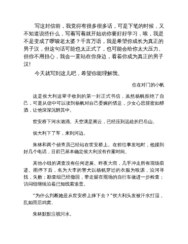 己,可是从信中可以读到杨帆对自己委婉的情意,少女心思甜蜜如醇