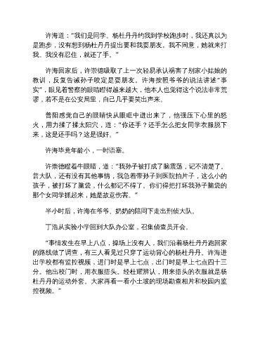“事情发生在早上八点,操场上没有人,我们沿着杨杜丹丹跑回家