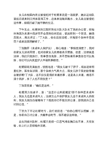女儿在校园内差点被侵犯对于杜耀来说是一场噩梦。她从运动队