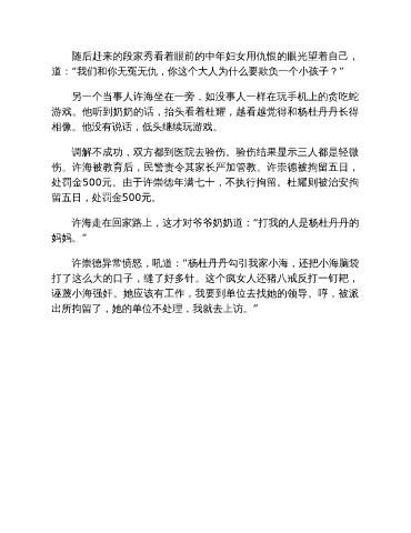 伤。许海被教育后,民警责令其家长严加管教。许崇德被拘留五日,