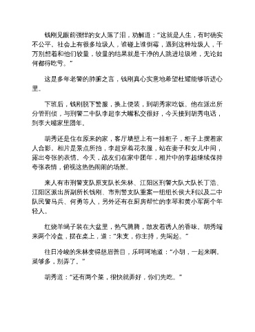下班后,钱刚脱下警服,换上便装,到胡秀家吃饭。他在派出所