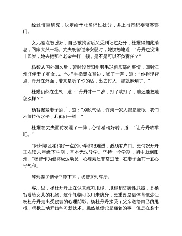 杨杜丹丹走出受侵害的心理阴影。杨杜丹丹接受了父亲送给自己的甩