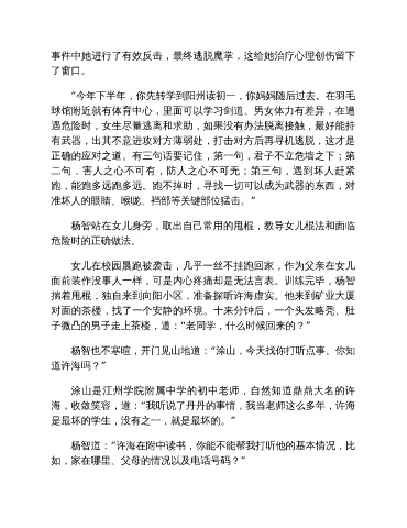 事件中她进行了有效反击,最终逃脱魔掌,这给她治疗心理创伤留下