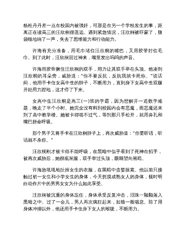 杨杜丹丹差一点在校园内被强奸,可那是在另一个学校发生的事,距
