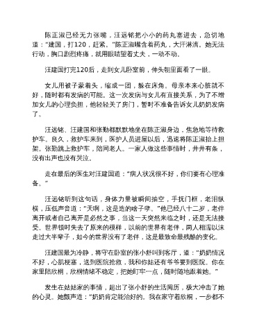 加女儿的心理负担,他轻轻关了房门,暂时不准备告诉女儿奶奶发病