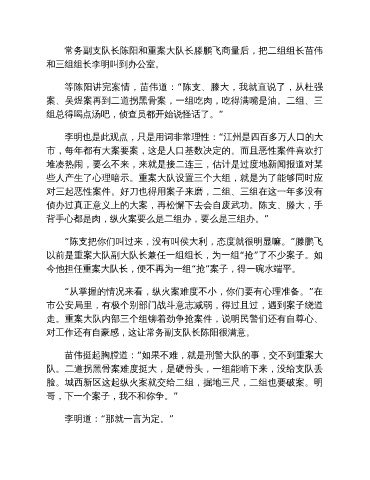 走。重案大队内部三个组铆着劲争抢案件,说明民警们还有自尊心、