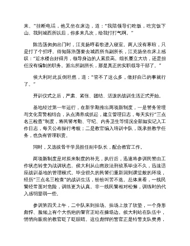 彪悍、脸颊上有个大伤疤的警官正站在操场边。侯大利站在队伍中,