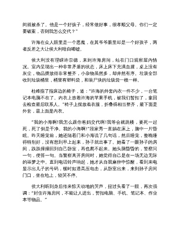 调:“封住许海房间,不能让人进出,暂扣电脑、手机、笔记本、作业