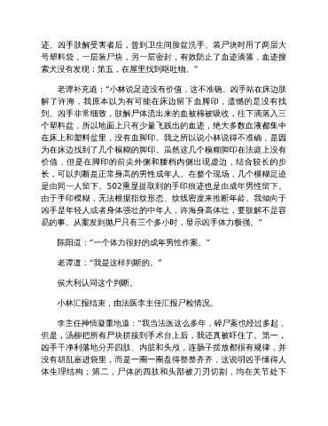 老谭补充道:“小林说足迹没有价值,这不准确。凶手站在床边肢