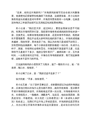 法》拍在桌上,说我们不让许海上学就是违法。许海妈妈也是厉害女