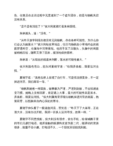 告。侦查员在走访过程中无意逮到了一个盗车团伙,但是与杨帆失踪