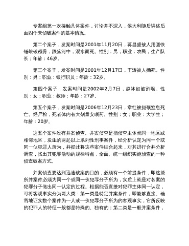 专案组第一次接触具体案件,讨论并不深入,侯大利随后讲述后