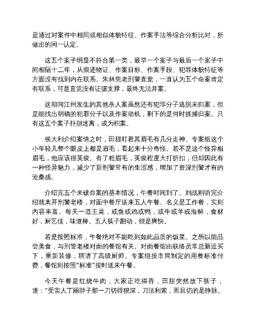 是通过对案件中相同或相似体貌特征、作案手法等综合分析比对,所