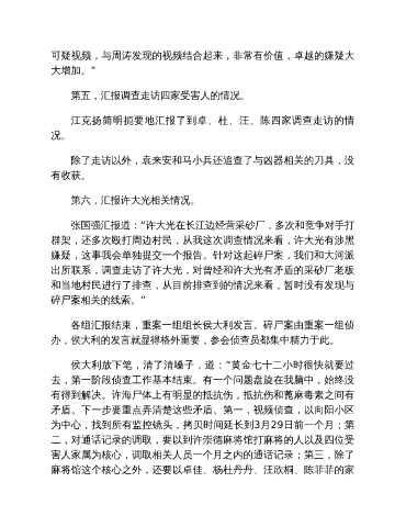 各组汇报结束,重案一组组长侯大利发言。碎尸案由重案一组侦