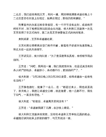 二点后,我们还得再找王芳,再问一遍。周涛继续调查卓越在晚上十