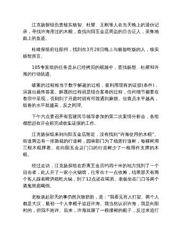 江克扬探组来到向阳五金店附近,没有找到“许海使用的木棍”。