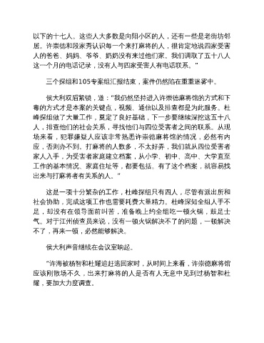 场来看,犯罪嫌疑人应该非常熟悉许崇德麻将馆的情况,必然有内