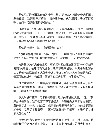 许海被杀的消息传出来后,蒋帆顿时明白汪建国所言“一个字都不