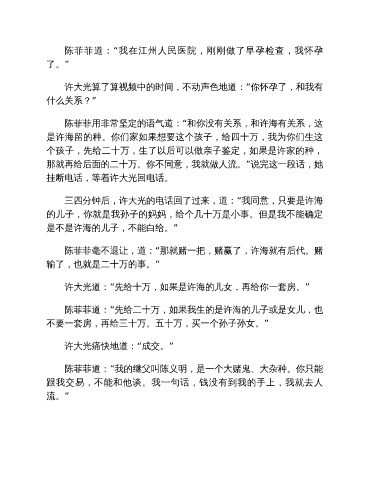 是许海留的种。你们家如果想要这个孩子,给四十万,我为你们生这