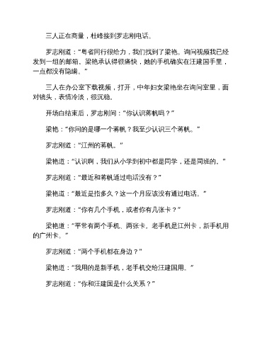 发到一组的邮箱。梁艳承认得很痛快,她的手机确实在汪建国手里,