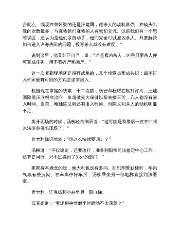 合此点。我现在最怀疑的还是汪建国,他杀人的动机最强,在镜头出