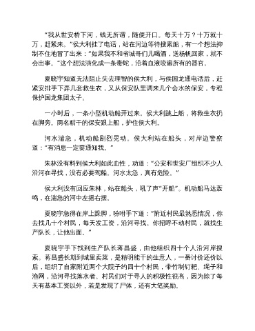夏晓宇手下找到生产队长蒋昌盛,由他组织四十个人沿河岸搜