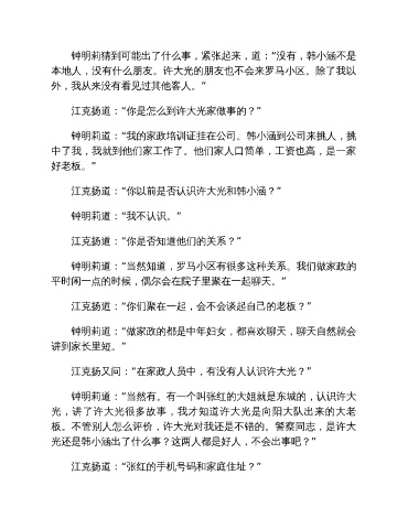 江克扬又问:“在家政人员中,有没有人认识许大光?”