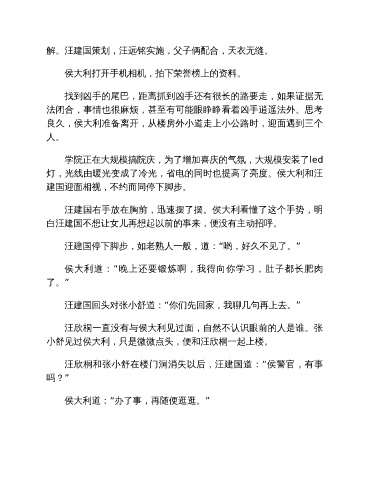 汪欣桐和张小舒在楼门洞消失以后,汪建国道:“侯警官,有事