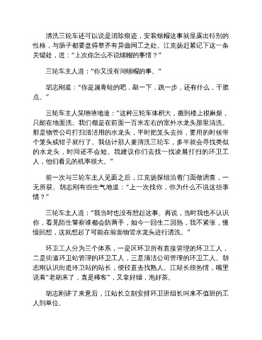志刚认识街道环卫站的站长,便径直去找熟人。江站长很热情,嘴里