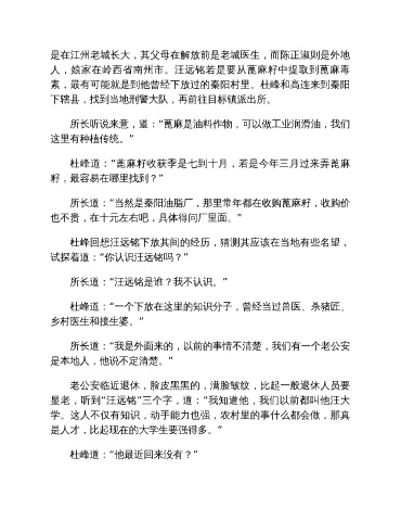 杜峰回想汪远铭下放其间的经历,猜测其应该在当地有些名望,