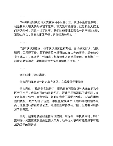 至此,越来越多的线索指向汪建国、汪远铭、蒋帆和梁艳,碎尸