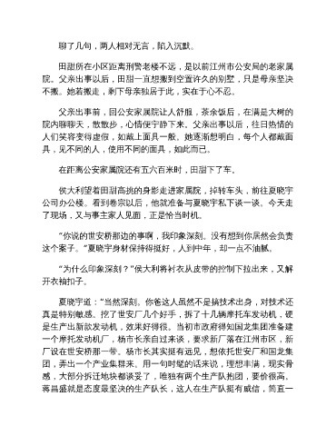 侯大利望着田甜高挑的身影走进家属院,掉转车头,前往夏晓宇