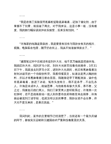 的环节,要核实汪远铭和汪建国在碎尸案和投毒案里的关系。