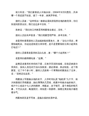 侯大利道:“我们要查的人叫杨永福,2004年9月到贵院,具体