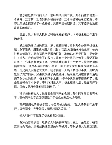 杨永福是杨国雄的儿子,曾经的江州富二代。几个侦查员追查一