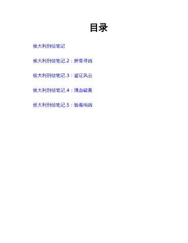 目录 侯大利刑侦笔记 侯大利刑侦笔记.2:辨骨寻凶 侯大利刑侦笔记.3:鉴证风云 侯大利刑侦笔记.4:滴血破案 侯大利刑侦笔记.5:验毒缉凶