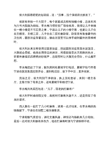 宁凌在国龙集团总部开会,接到电话后,放下手中活,直奔侯家。