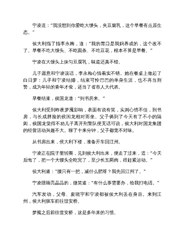 汽车发动,父母、夏晓宇和宁凌都被侯大利丢在身后。来到江