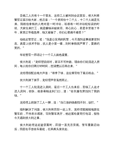 丢钱工人共有十一个室友。这些工人被叫到会议室后,侯大利将