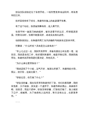 技术室很快有了结论,朱建伟衣服上的血迹属于张勇。