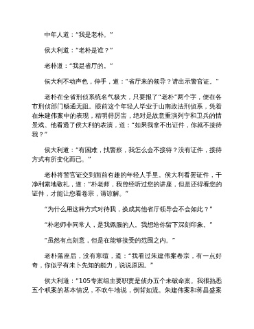 老朴将警官证交到面前有趣的年轻人手里。侯大利看罢证件,干