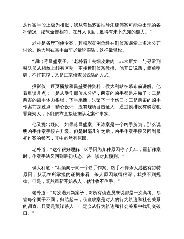 侯大利道:“我倾向于同一个凶手作案。凶手不停杀人必然有独特