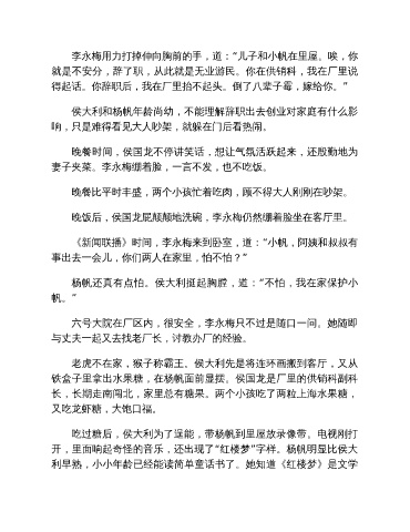 晚饭后,侯国龙屁颠颠地洗碗,李永梅仍然绷着脸坐在客厅里。