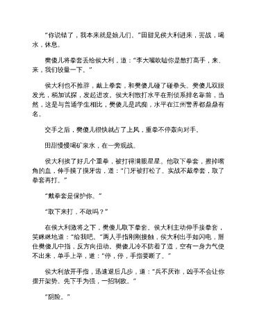 发光,稍加试探,发起进攻。侯大利散打水平在刑侦系排名靠前,当