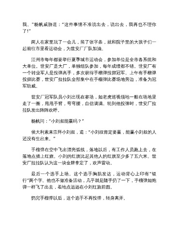 行”两个字。他也不做准备活动,几乎就是随手扔了一下,手榴弹如炮
