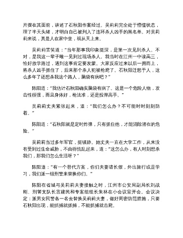 片摆在其面前,讲述了石秋阳作案经过。吴莉莉完全处于懵懂状态,