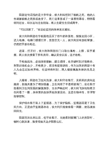 田甜这句话指的是大学毕业,侯大利却想到了杨帆之死。他的人