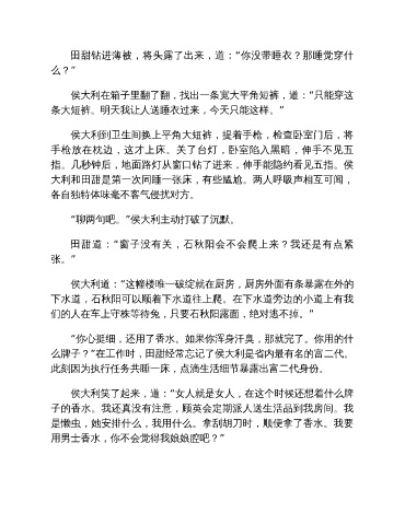 侯大利到卫生间换上平角大短裤,提着手枪,检查卧室门后,将