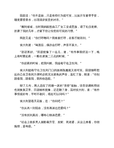 聊了几句,两人适应了同睡一床的“亲密”接触,语音语调和用词