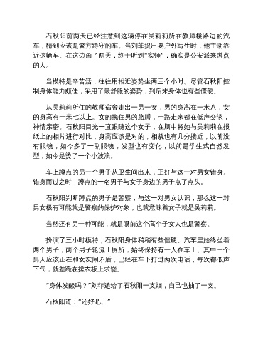 神情亲密。石秋阳目光一直跟随这个女子,在脑中将她与吴莉莉在报